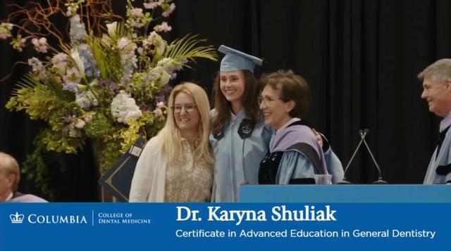 哥伦比亚大学牙科学院发布在 YouTube 上的这段鲜为东谈主知的毕业视频中,卡琳娜身着学士服,满脸笑貌地走上舞台,手艺还出现了狼狈一幕:责任主谈主员翻找许久齐找不到写有她名字的毕业证。形状主任维姬・埃万杰利迪斯 - 萨克尔森一边翻找一边筹商 “卡琳娜在哪儿?”,卡琳娜笑着讲述 “不紧迫”,随后忍不住爆笑,涓滴不在意这场小插曲。最终在另一位官员的走漏下,责任主谈主员璷黫递给她一张毕业证,世东谈主拥抱合影,全程氛围迟滞。